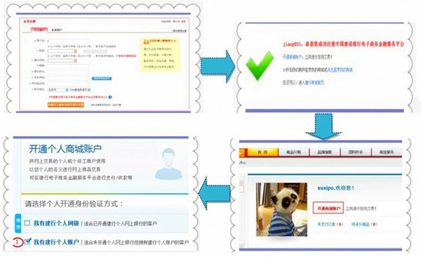 访问“善融商务”个人商城:访问善融商务网站e.ccb.com、再选择“个人商城”进入,或直接输入网址buy.ccb.com进入。点击“免费注册”进入会员注册界面。选择注册“个人用户”,按照页面提示填写信息,点击“已阅读并同意《中国建设银行电子商务金融服务平台会员服务协议》”,点击提交。